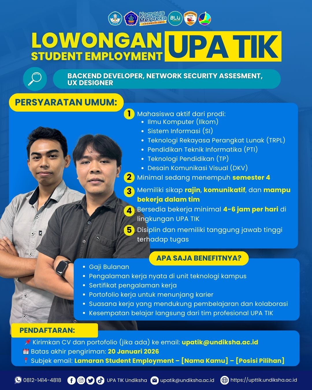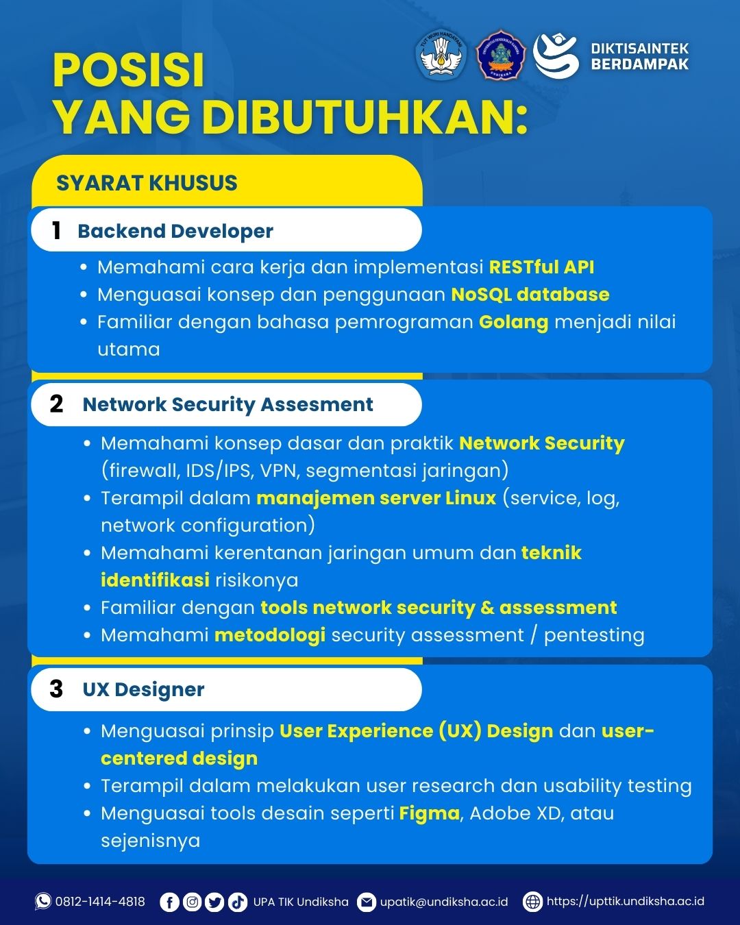 📩 Kirim CV dan portofolio (jika ada) ke: upatik@undiksha.ac.id